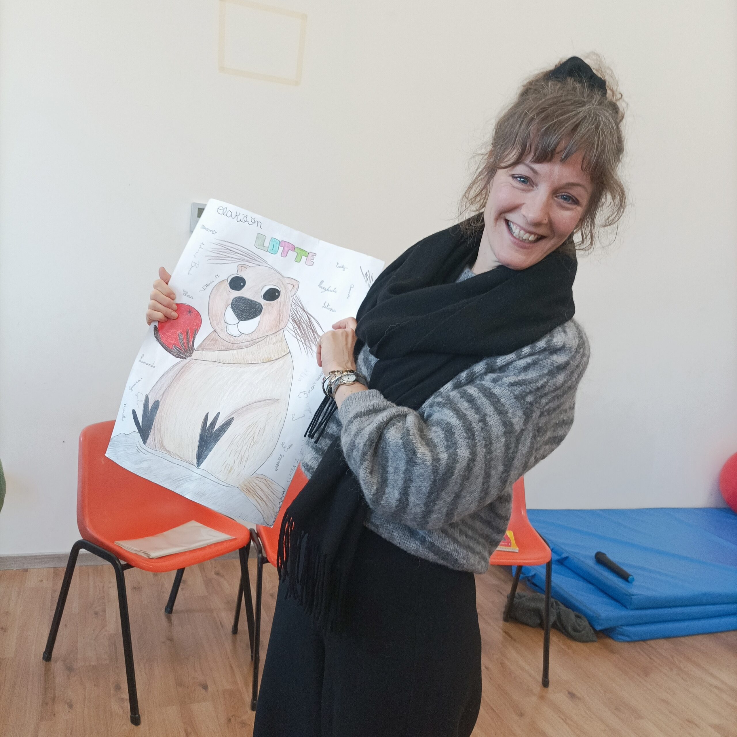È proprio vero che per i ragazzi incontrare l’autore o l’autrice che sta dietro le pagine che hanno amato è un’esperienza unica. Ma non solo per loro, è una grande emozione anche per gli insegnanti o gli adulti che li hanno accompagnati nella lettura ed anche per noi librai che, dallo scambio con gli scrittori e le scrittrici che abbiamo la fortuna di incontrare, impariamo sempre moltissimo. E se la scrittrice in questione è Lena Frölander-Ulf lo possiamo dichiarare a voce altissima. Elegante, garbata, generosa nel rispondere alle tante domande e curiosità dei bambini che ha incontrato alla scuola Primaria Senza Zaino “Campoleone” di Castelluccio.